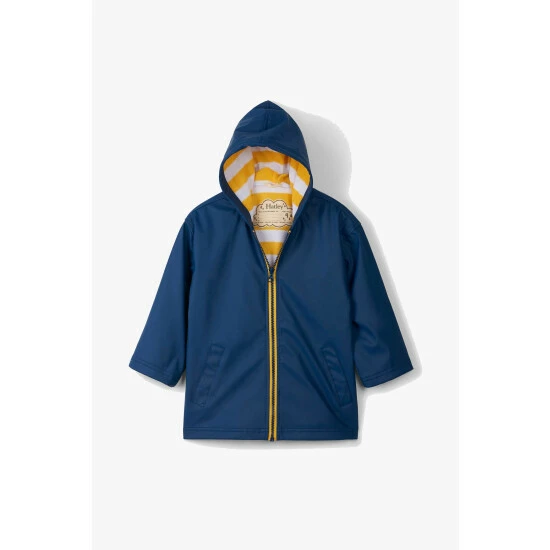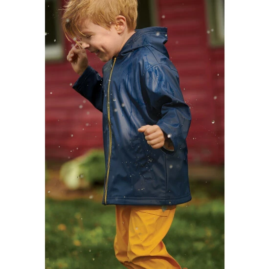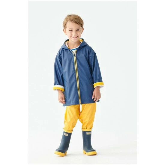A more sophisticated take on raincoats, this classic red and navy splash jacket will brighten up even the cloudiest of days.