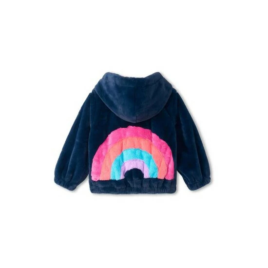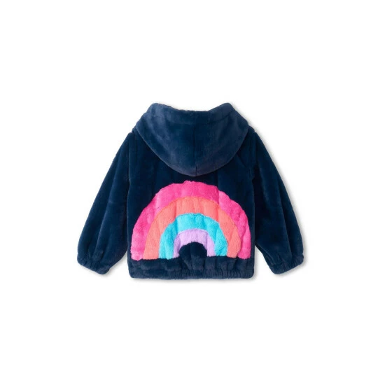 Hatley Blue Rainbow Faux Fur Satin Lined Bomber Jacket