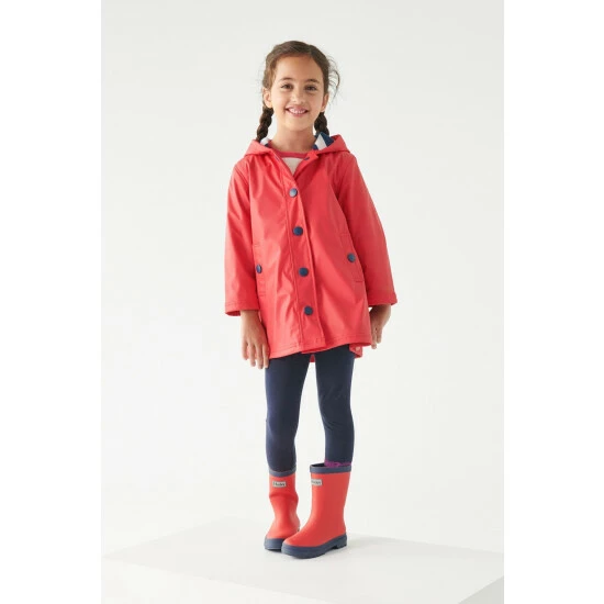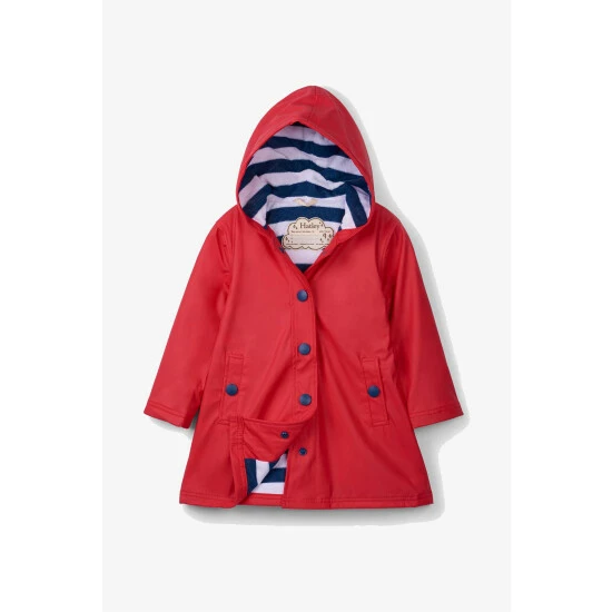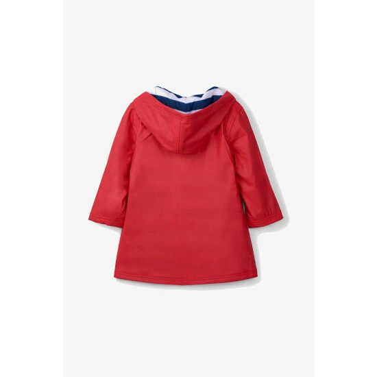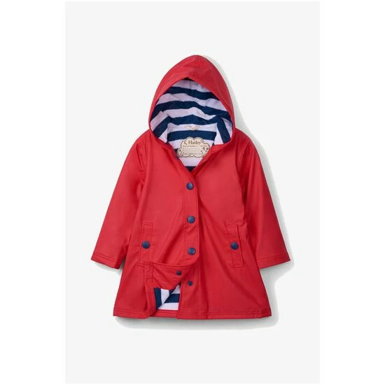 A more sophisticated take on raincoats, this classic red and navy splash jacket will brighten up even the cloudiest of days.