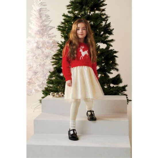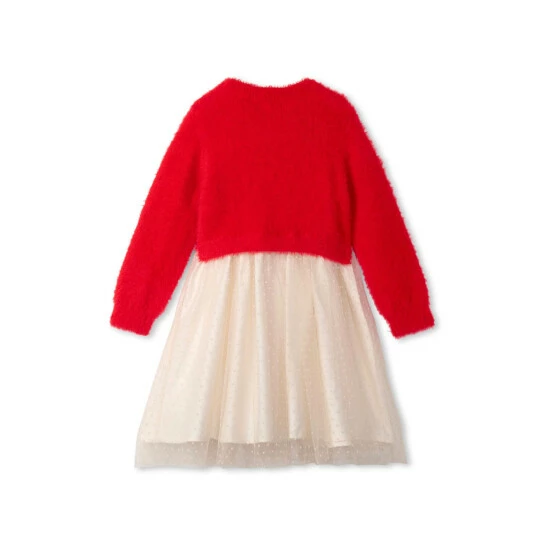 Say goodbye to wardrobe dilemmas and say hello to this beautiful mix media dress! Perfect for play dates or for festive parties, this dress is sure to be a hit.