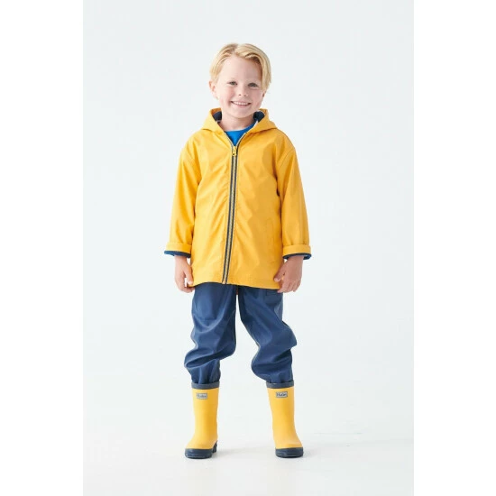 A more sophisticated take on raincoats, this classic red and navy splash jacket will brighten up even the cloudiest of days.
